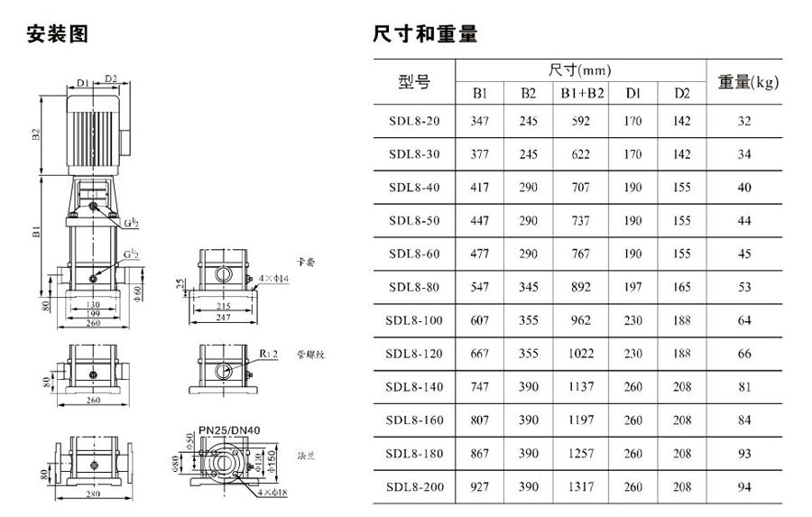 南元SDL8/SDLT8立式多級離心泵有不同的泵規(guī)格和不同級數(shù),以滿足所需的流量和壓力。