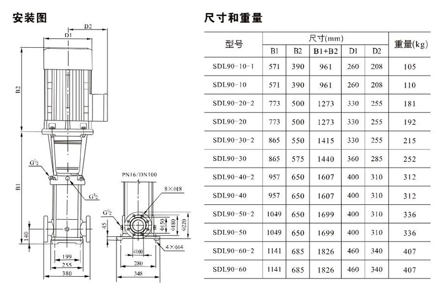 南元SDL90/SDLT90立式多級離心泵有不同的泵規(guī)格和不同級數(shù),以滿足所需的流量和壓力。