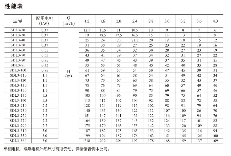 南元SDL3/SDLT3立式多級(jí)離心泵有不同的泵規(guī)格和不同級(jí)數(shù),以滿足所需的流量和壓力。