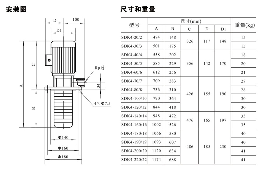 SDK4/SDKT4為配用標準電機的非自吸立式多級離心泵,電機軸和泵軸用聯(lián)軸器直接聯(lián)接的結構。為滿足水槽或容器的安裝深度,可安裝空套的腔體來改變泵本身的侵入 深度。