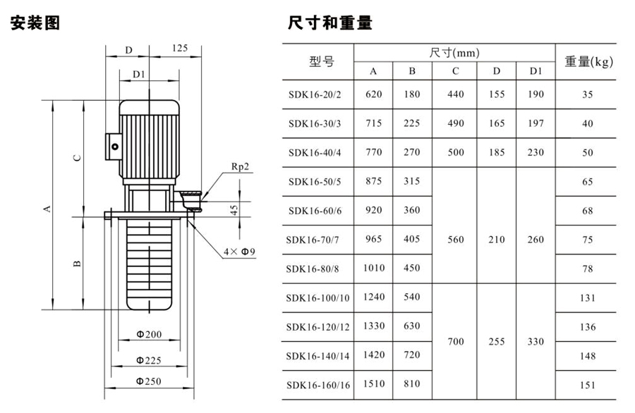 SDK16/SDKT16為配用標準電機的非自吸立式多級離心泵,電機軸和泵軸用聯(lián)軸器直接聯(lián)接的結構。為滿足水槽或容器的安裝深度,可安裝空套的腔體來改變泵本身的侵入 深度。