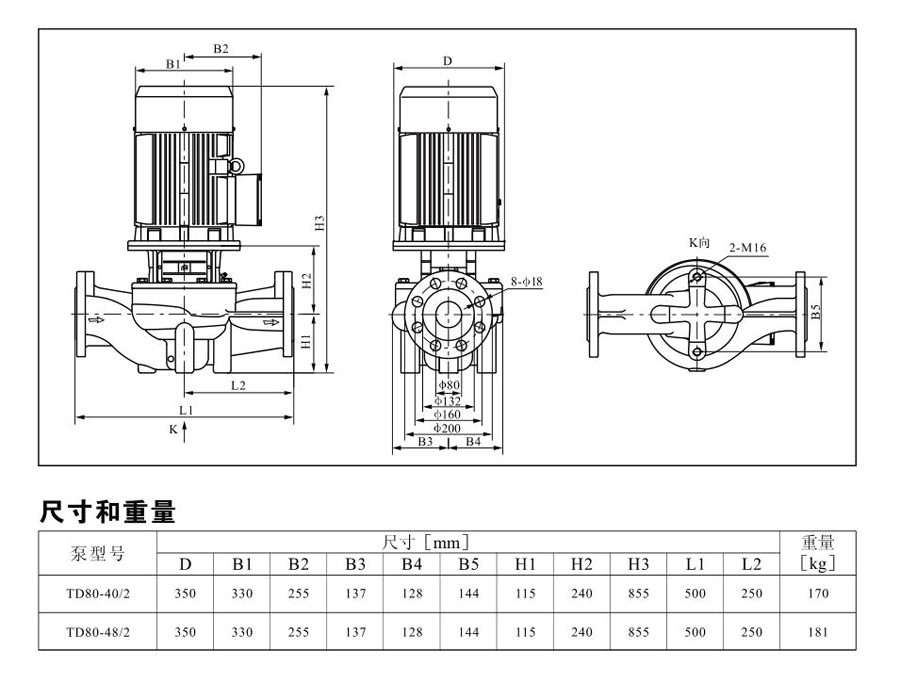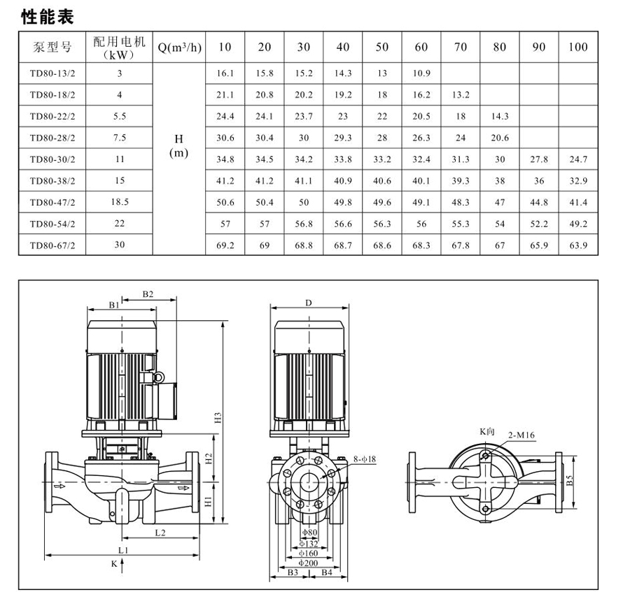 TD80系列單級管道離心泵,配有標(biāo)準(zhǔn)電 機(jī)和機(jī)械密封。此類產(chǎn)品的結(jié)構(gòu)與相近類型產(chǎn)品相比,更不易受到泵送液體中雜質(zhì)的影響。產(chǎn)品設(shè)計為頂部可拉出的拆裝形式,其可 以在不影響管路系統(tǒng)的情況下對泵進(jìn)行維修。所有泵采用創(chuàng)新式便拆式機(jī)械密封,更好機(jī)械密封無需拆卸電機(jī)。